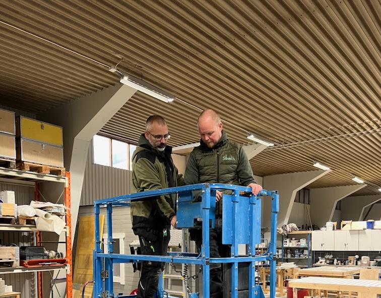 I går fick de som inte redan gått kursen i att köra skylift sin utbildning. Kursen bestod av både teori med avslutande prov och uppkörning. Nu hänger takrännorna säkra, och av bilden att döma Torbjörn likaså 😊